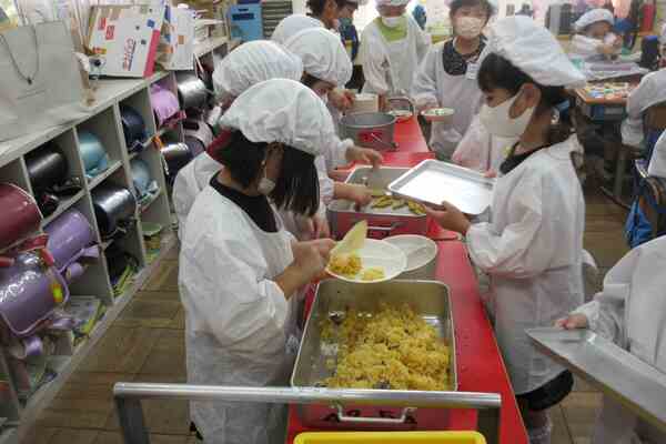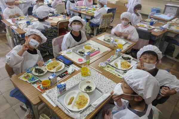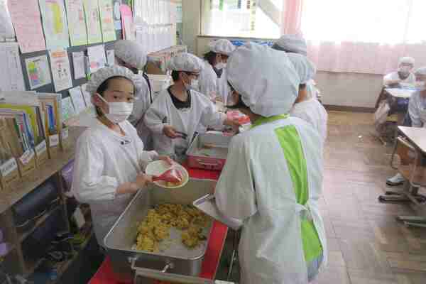 ◎みんなで配膳をして、礼儀正しく、「いただ