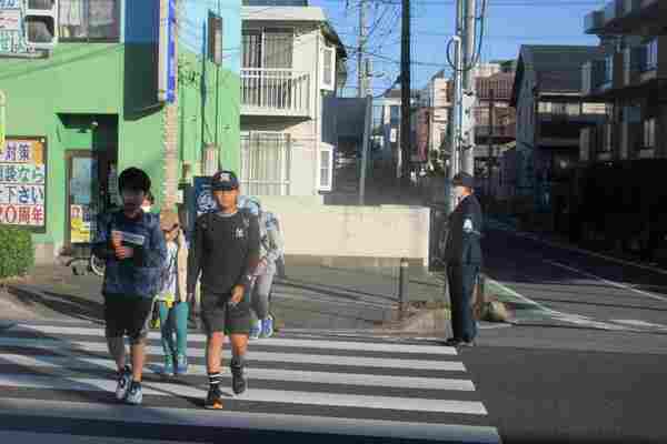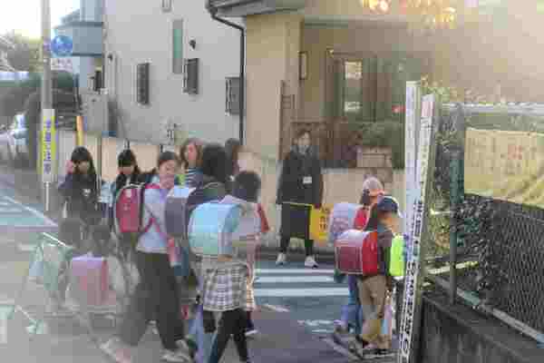 ◎学区を回り、挨拶運動を終えて職員玄関へ