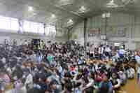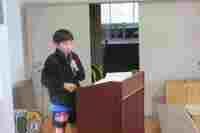 ◎朝会の進行は、図書委員長の並木さんがマイク