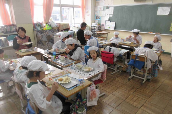 ◎画像は、昨日の給食の時間の様子です。