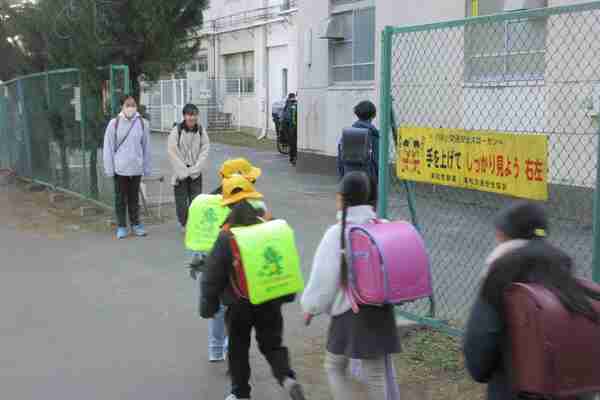 皆様と一緒に、登校中の子どもたちと元