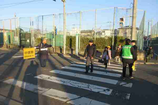学区内の交差点に立たせていただいてお