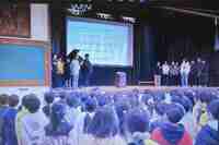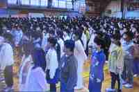 ◎今朝は、体育館で音楽朝会を開き
