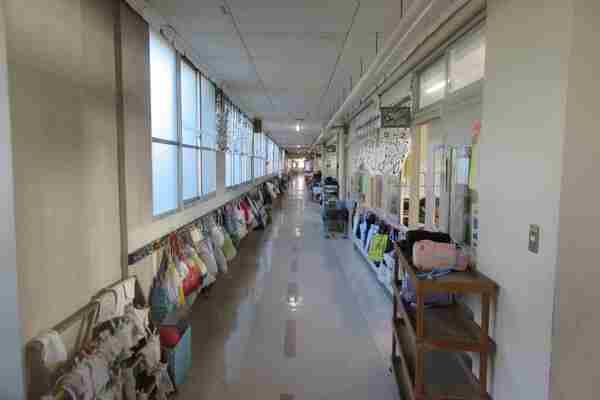 廊下、荷物の整理の仕方、掲示物、教室
