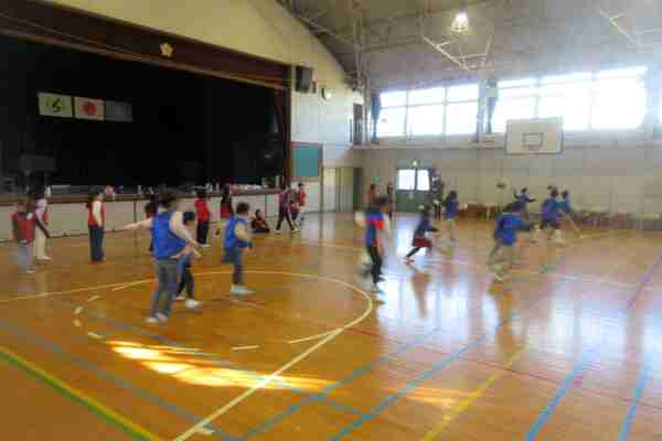 合図に合わせて、体育館を元気に走ってい