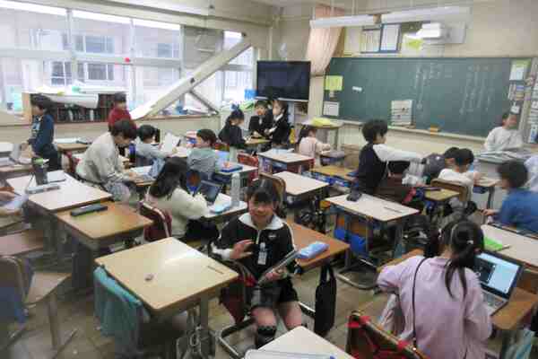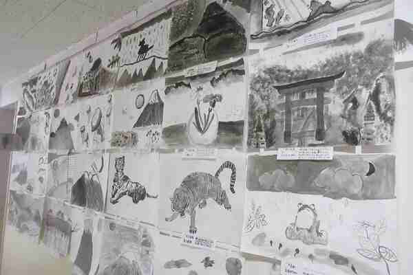 ◎先日、お伝えした6年生の墨絵が廊下に掲示