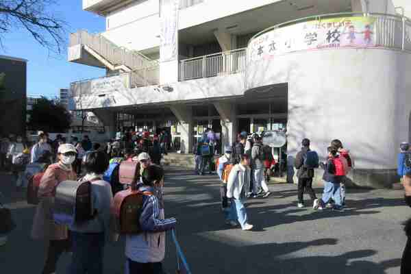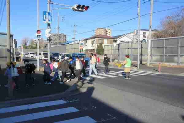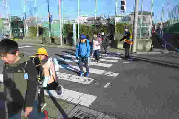 がら子どもたちの様子を見て、挨拶を交わ