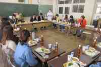 ◎会議の後は、本校自慢の給食をご試食い