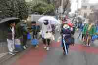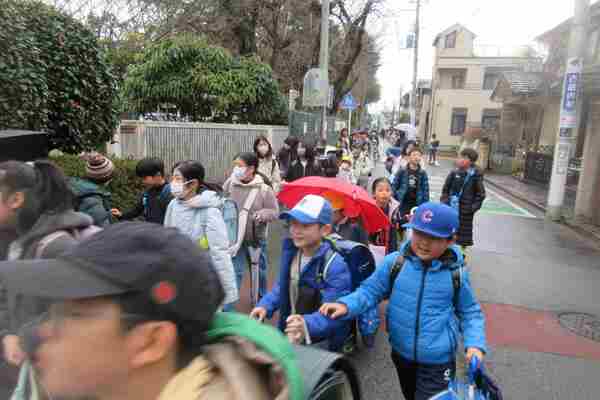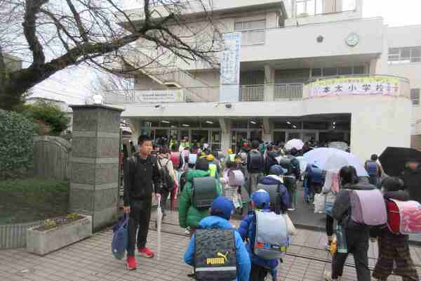 ささずに登校する子ども、まちまちでし