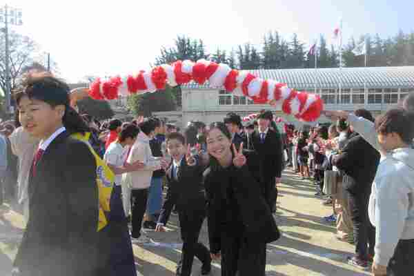 校生も別れを実感し、運動場には、何