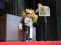 虹さんの表彰と作品の紹介をさせていた