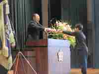 式の前に、1年生の各学級代表の