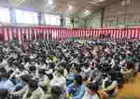 ◎校歌の歌声は全員で体育館が割れんばか